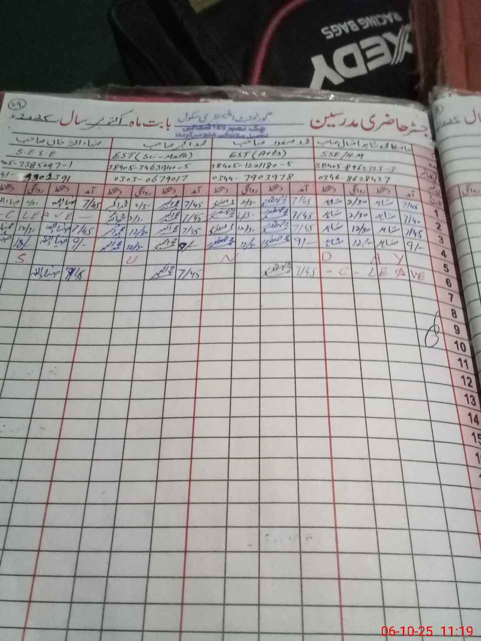 | Name: Ha**** MSh**** Iq**** Designation: (School Headmaster's/Headmistress's) S.S.T.(sci) Phone/Cell Number: 03**** |