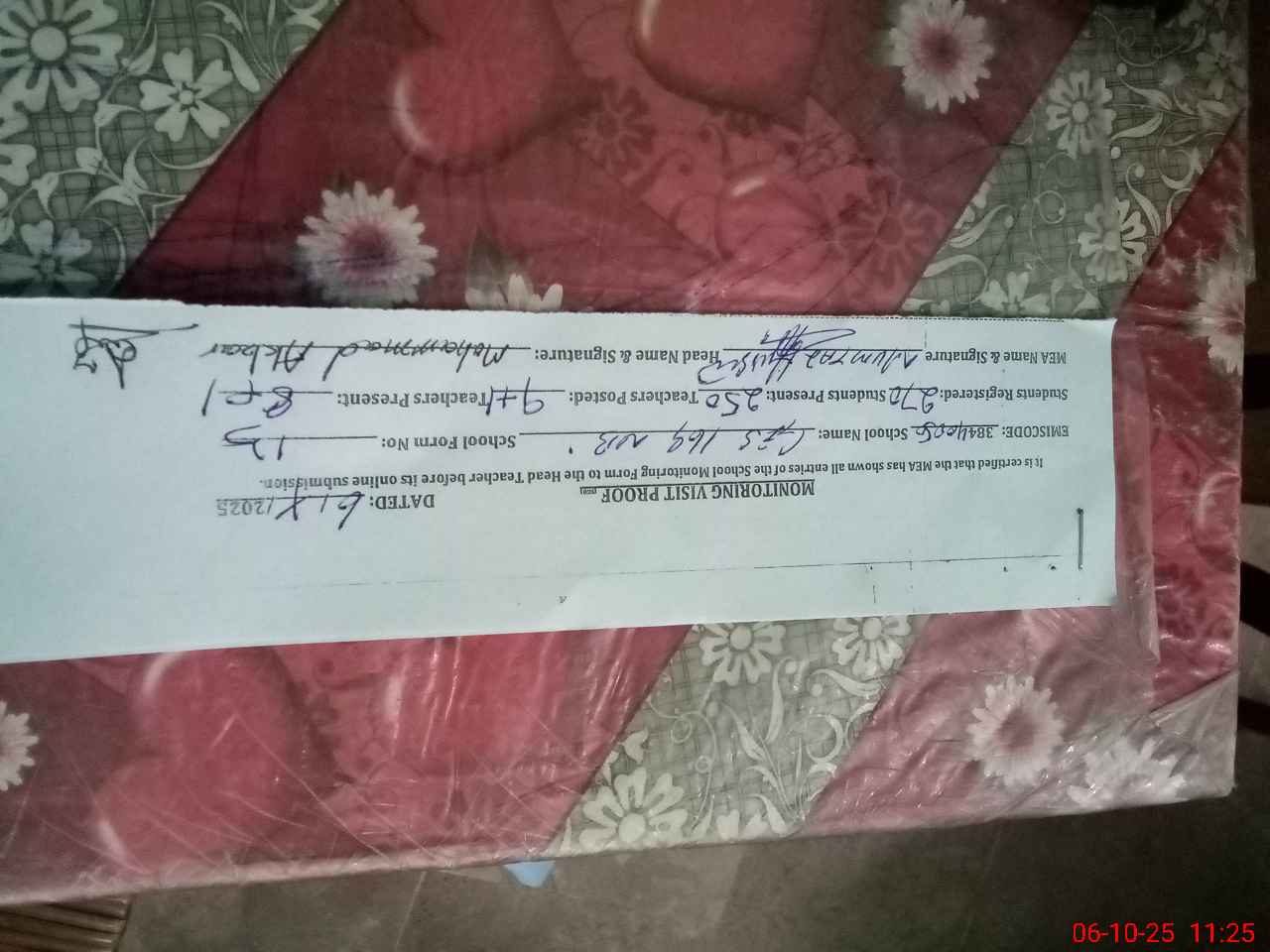 | Certified that this School was Inspected by the Undersigned MEA/DMO Today and the Information Stated Above is as Per Record. | |||||