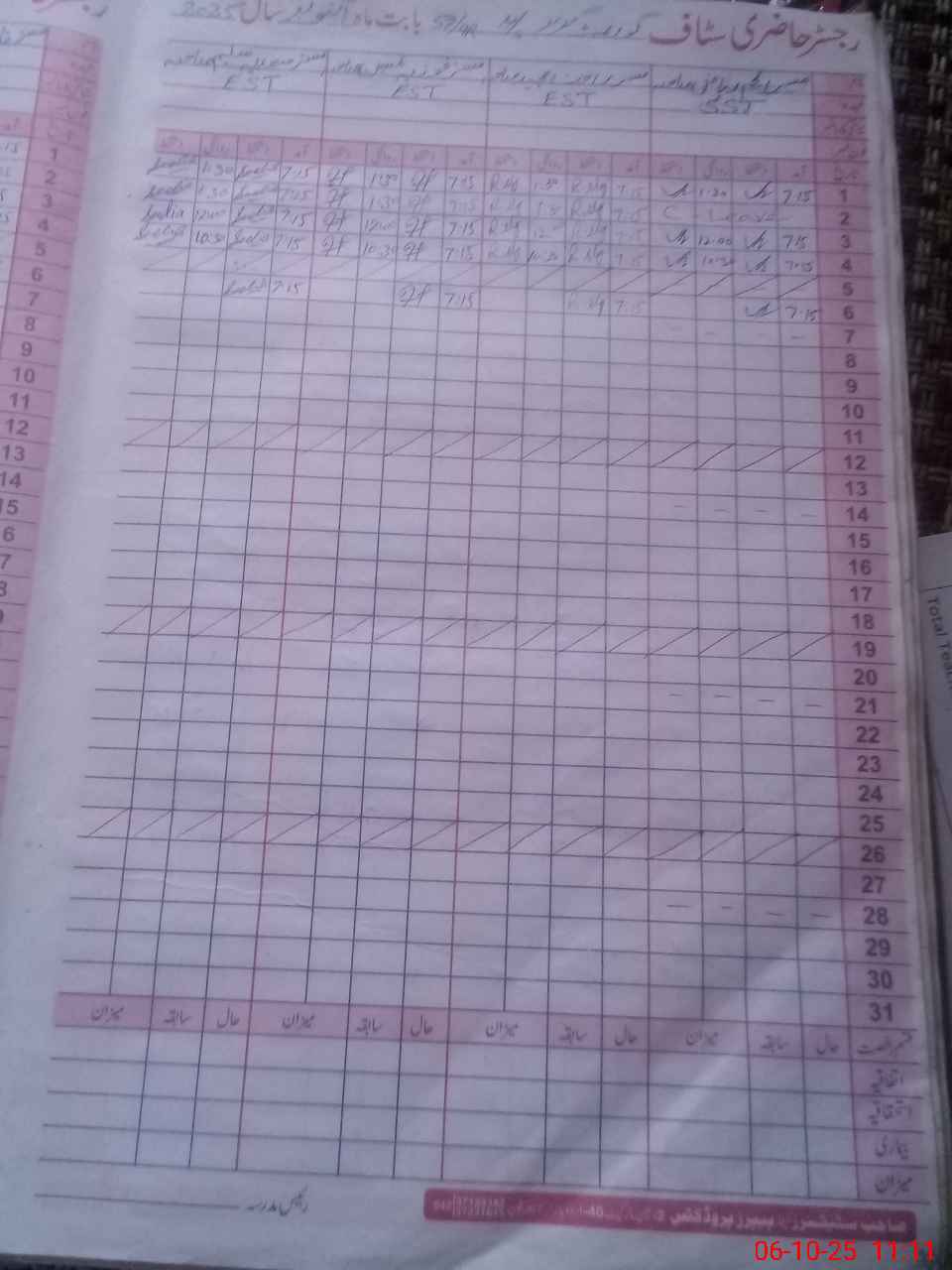 | CNIC | Full Name | Designation | R/C | Absence During Last Calender Month |