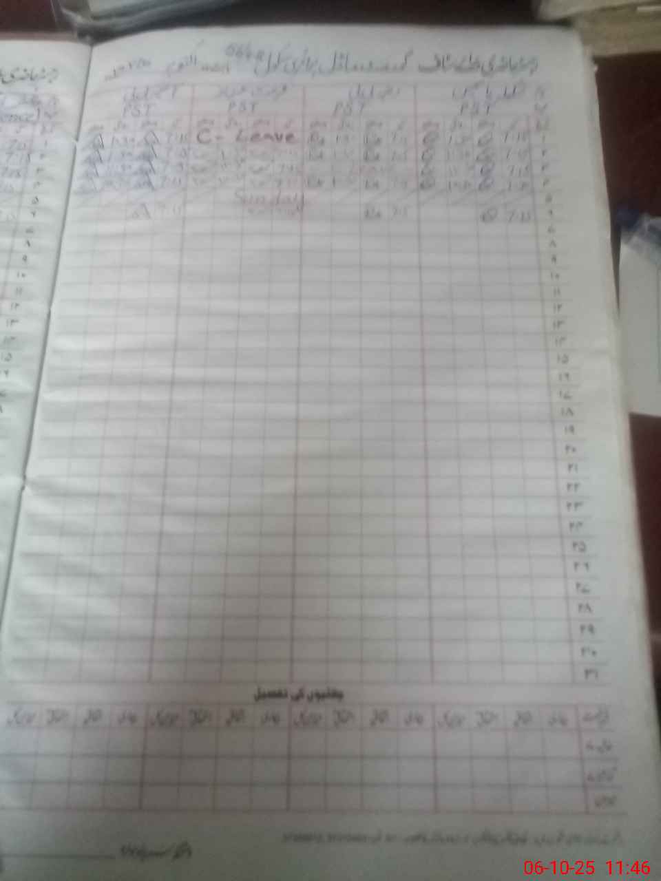 | CNIC | Full Name | Designation | R/C | Absence During Last Calender Month |
