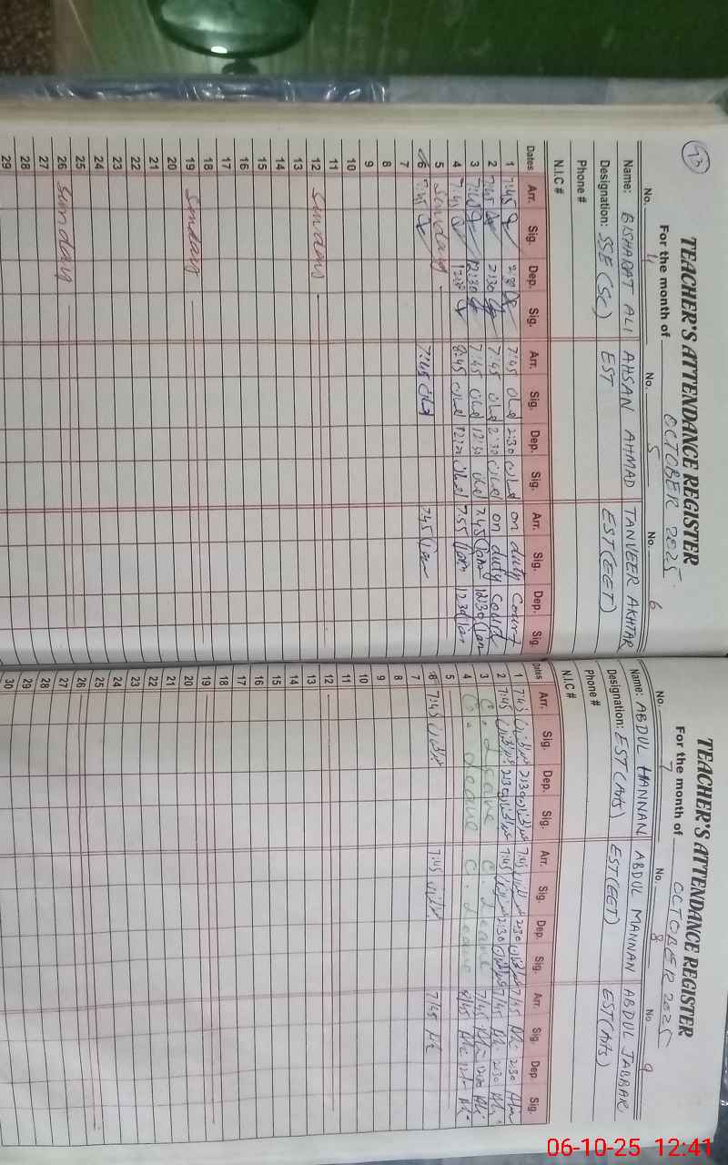 | Name: Bi**** Al**** Designation: (School Headmaster's/Headmistress's) SSE ( Science ) Phone/Cell Number: 03**** |