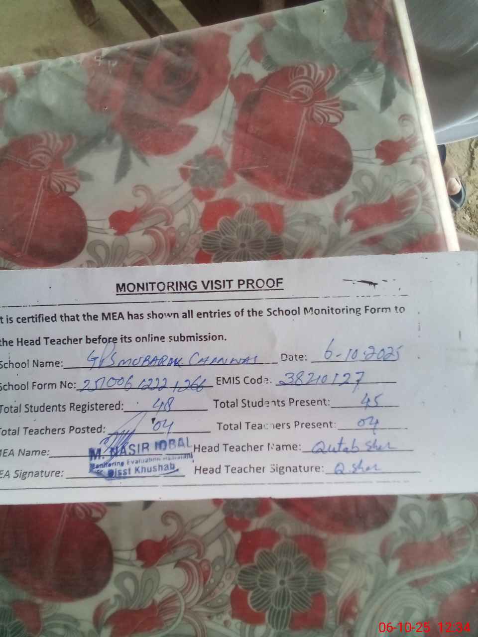 | EMIS Code: 38210127 | Name of School: GPS MUBARAK CHANWAS | |||