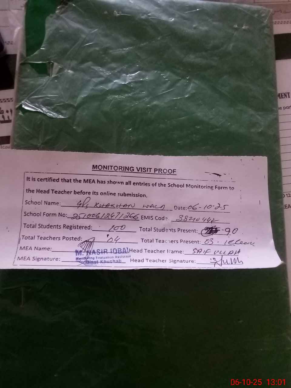 | EMIS Code: 38210442 | Name of School: GPS KHAKHAN WALA | |||