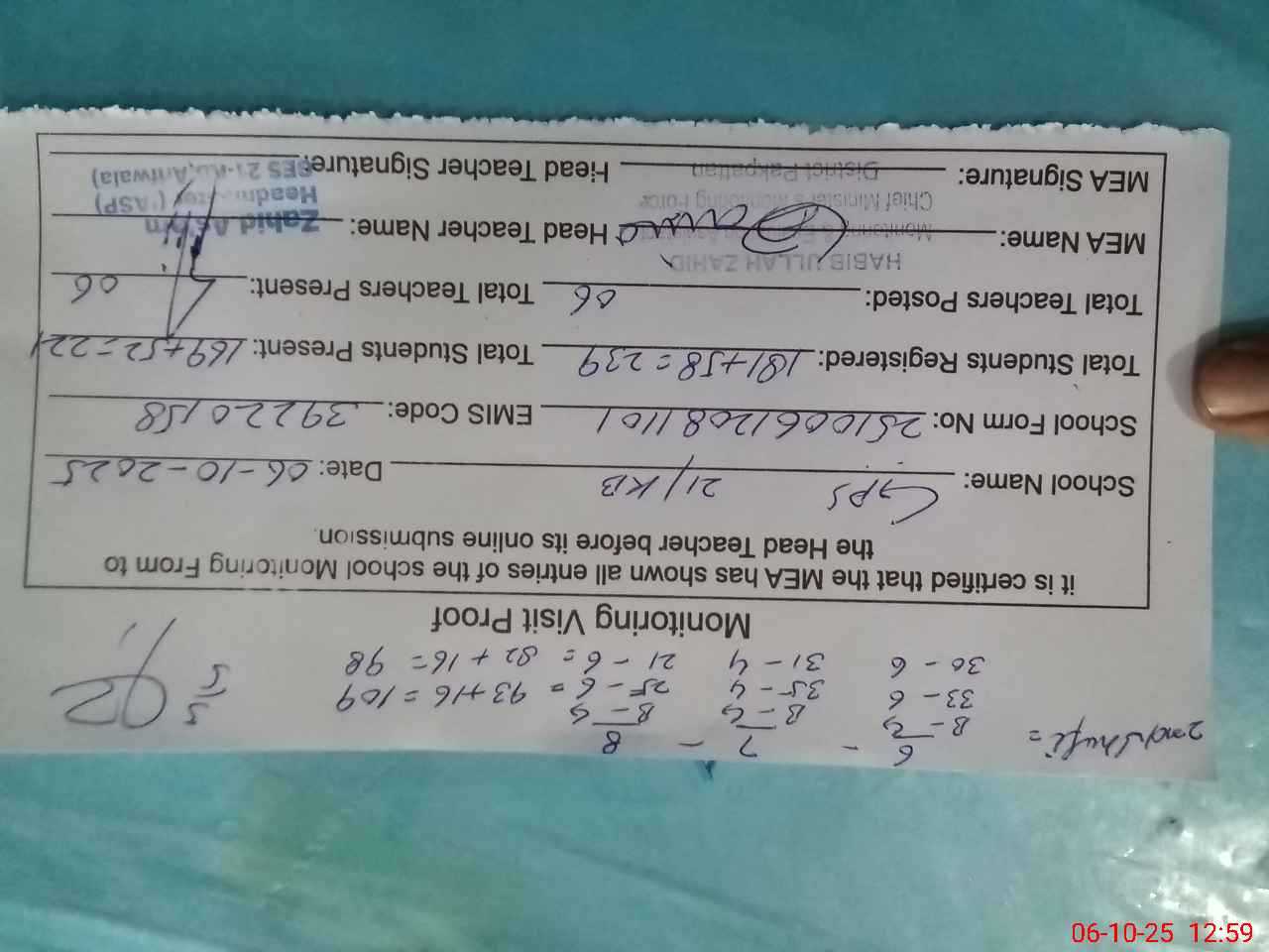 | Name: ZA**** AS**** Designation: (School Headmaster's/Headmistress's) PST Phone/Cell Number: 03**** |