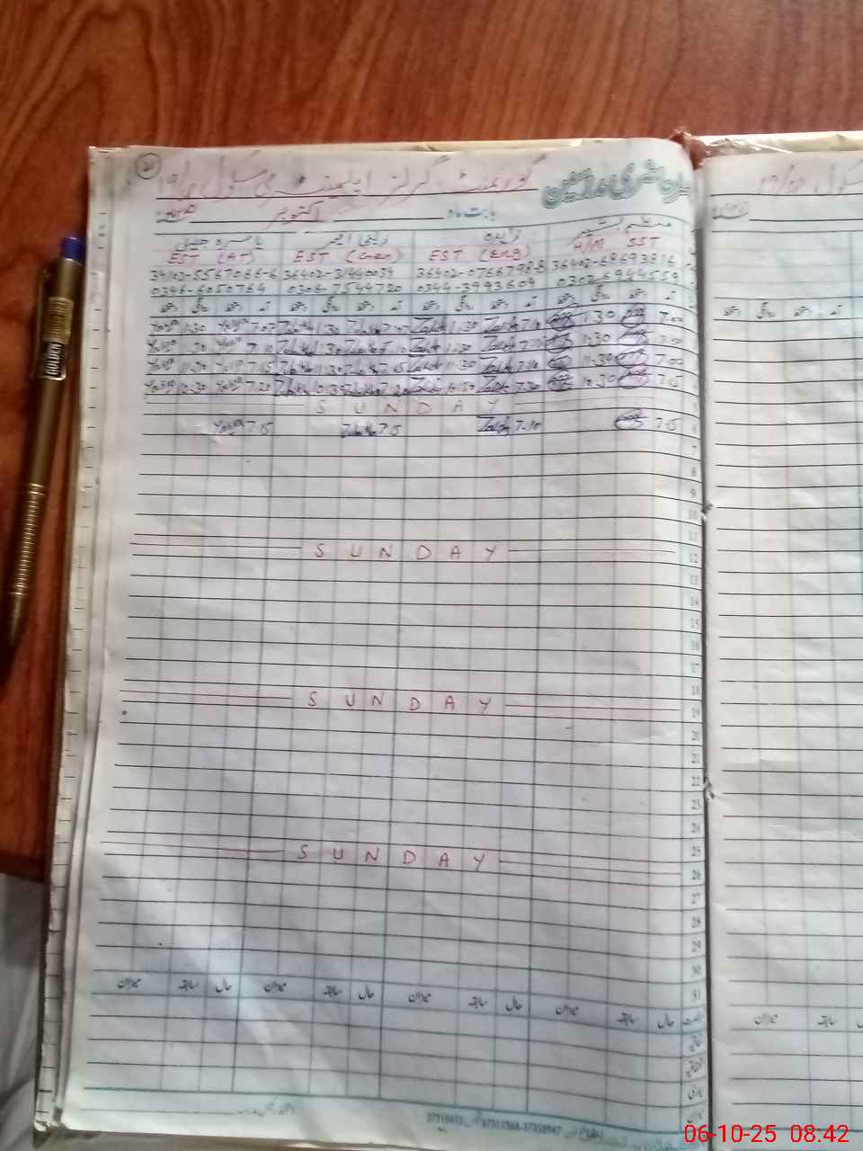 | CNIC | Full Name | Designation | R/C | Absence During Last Calender Month |