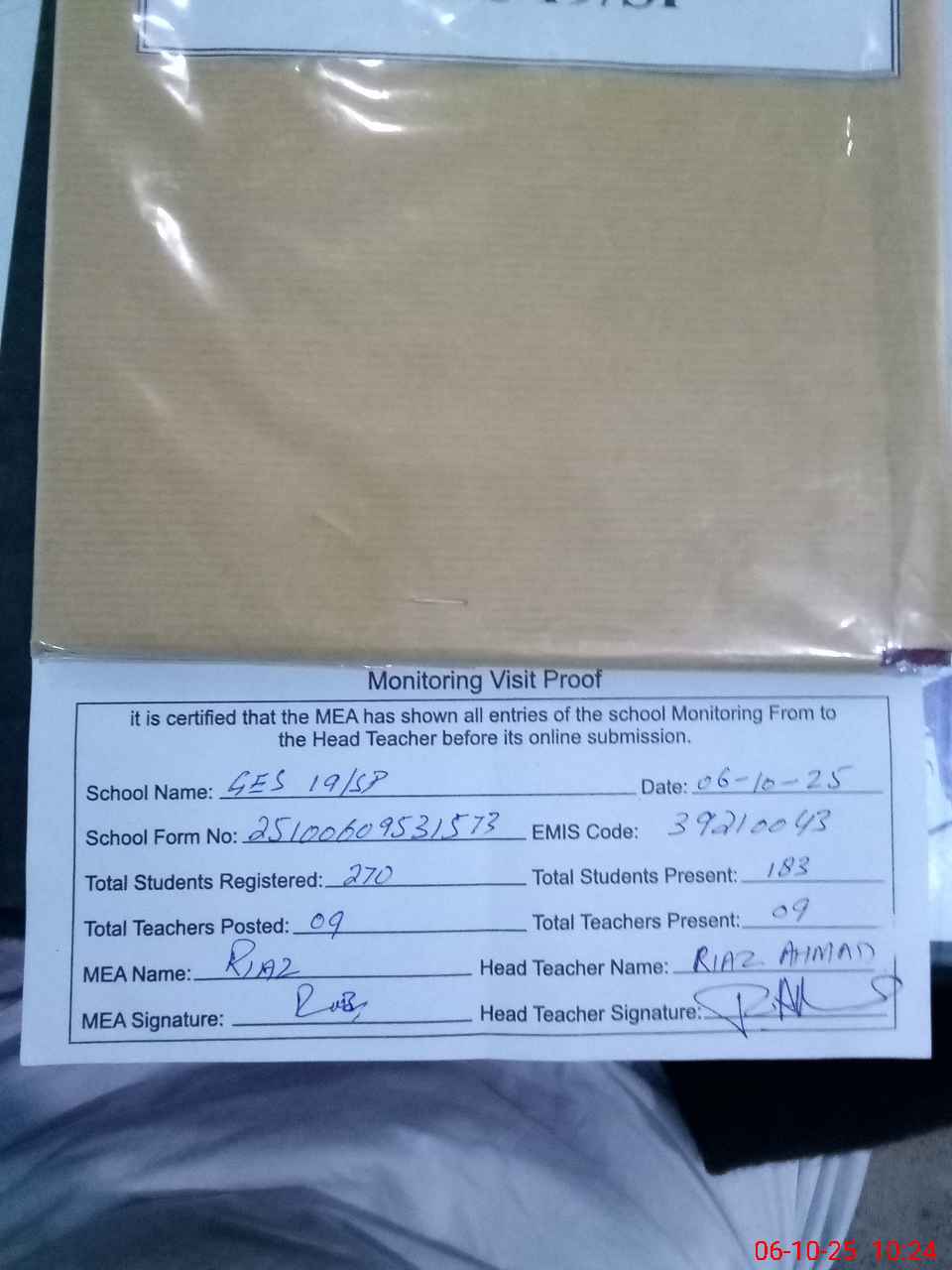| EMIS Code: 39210043 | Name of School: GES 19/SP PAKPATTAN | |||