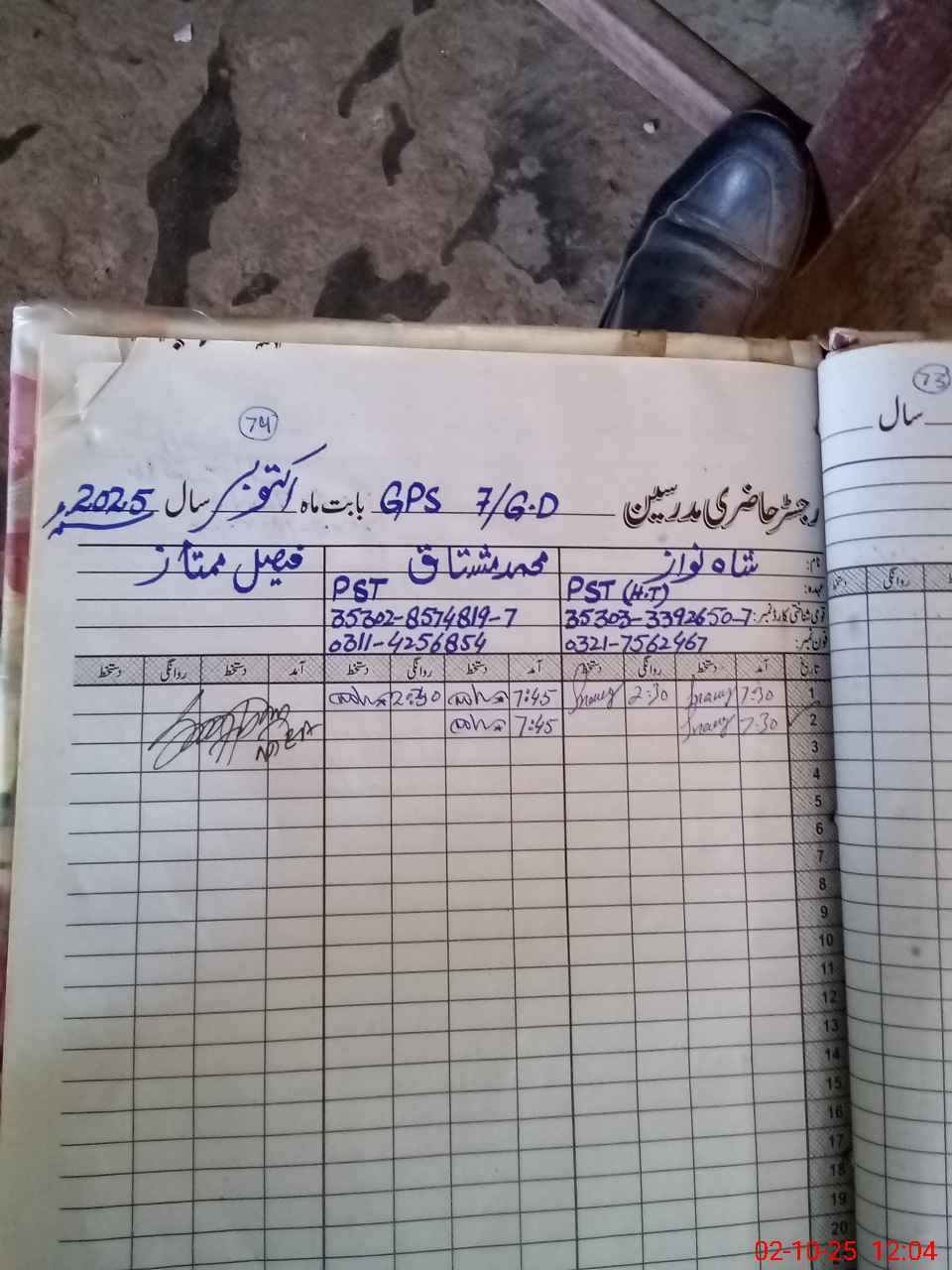 | Name: SH**** Designation: (School Headmaster's/Headmistress's) PST Phone/Cell Number: 03**** |