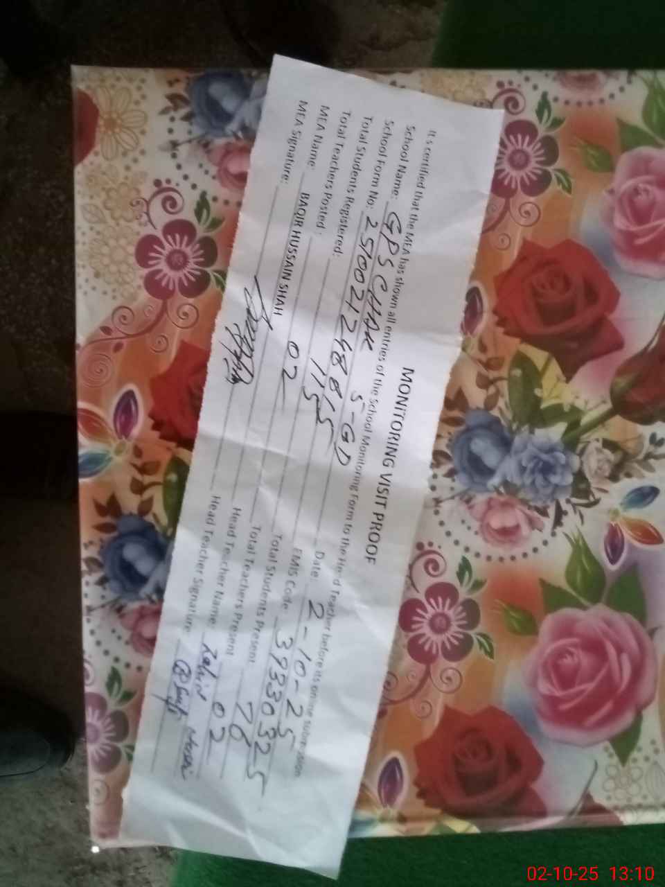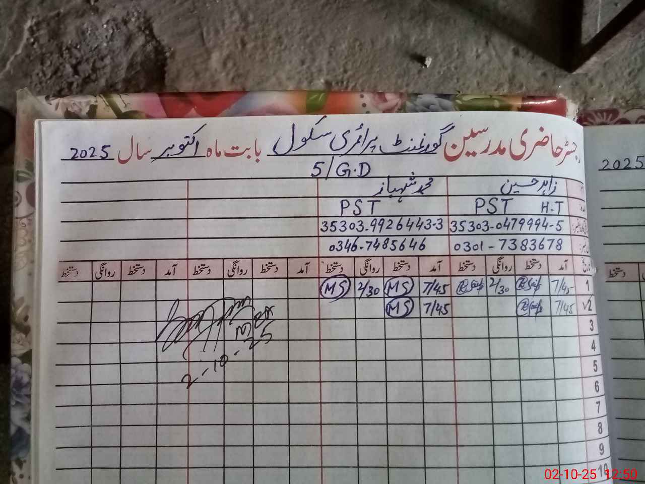 | EMIS Code: 39330325 | Name of School: GPS CHAK NO 5/GD | |||