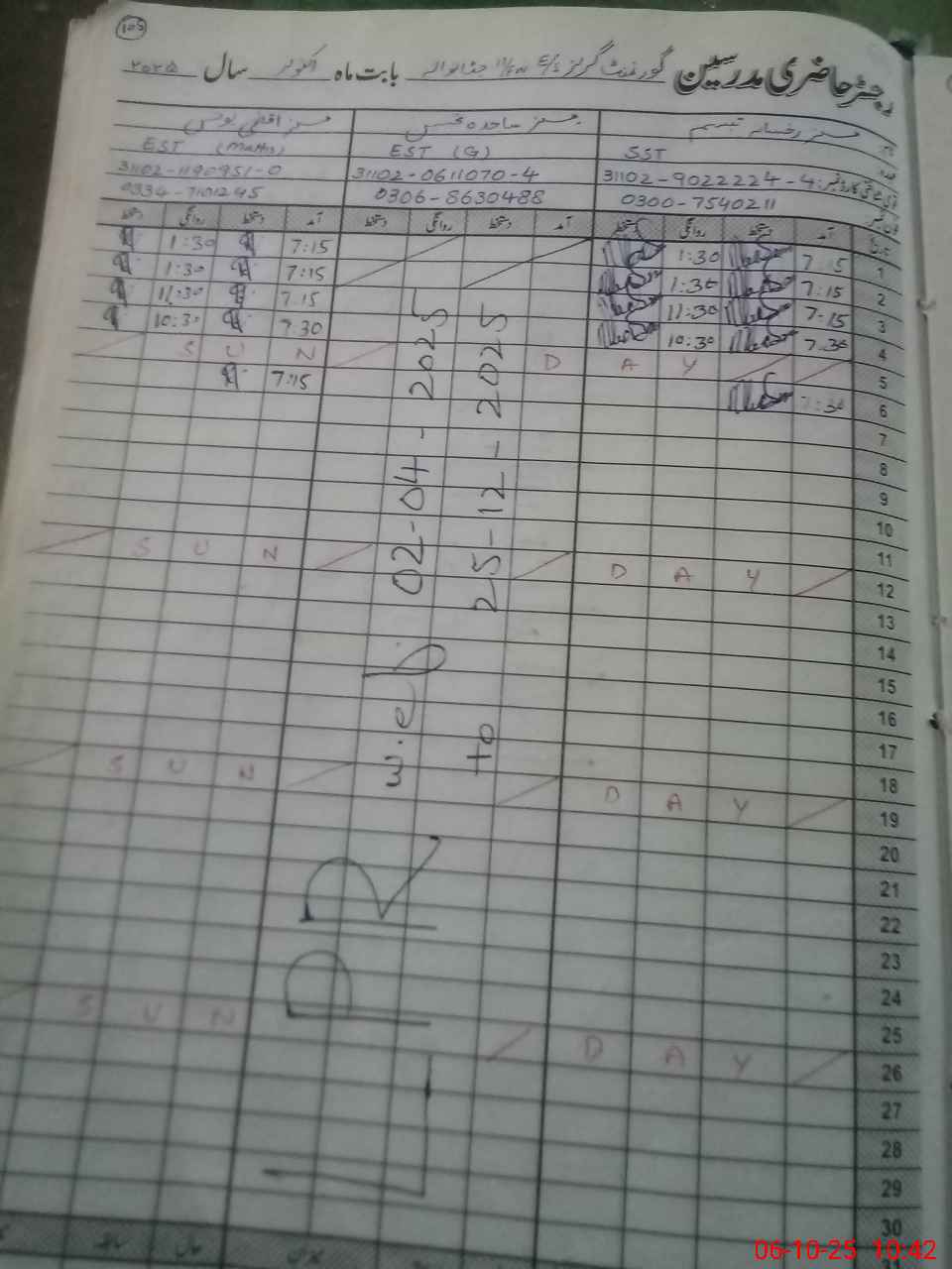 | Name: RU**** TA**** Designation: (School Headmaster's/Headmistress's) S S T ARTS Phone/Cell Number: 03**** |
