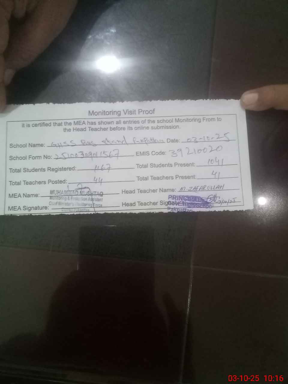 | EMIS Code: 39210020 | Name of School: GHSS BUS STAND PAKPATTAN | |||