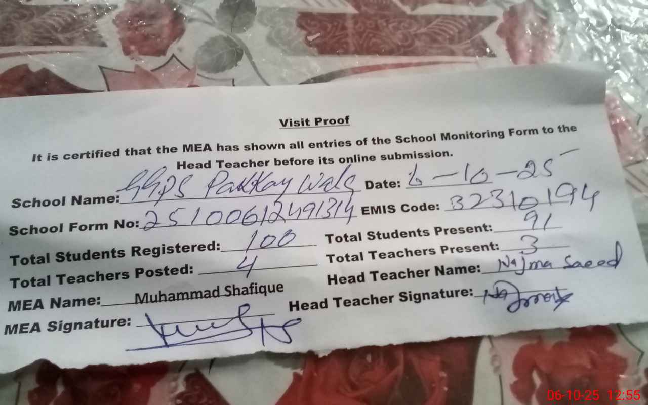 | Attendance Register | Head Teacher | MEA with School | Visit Proof |