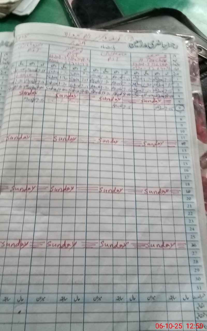 | CNIC | Full Name | Designation | R/C | Absence During Last Calender Month |