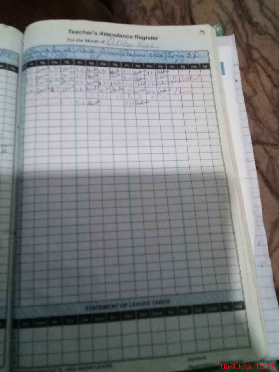 | Leave | Duty | Absent | Maternity | Medical | Ex- Pak |
