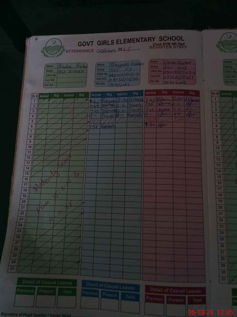| 38**** | Sa**** Iq**** | Contract | 30 | 0 | 0 | 30 | 0 | 0 | 0 | 0 | 0 | Maternity | |
