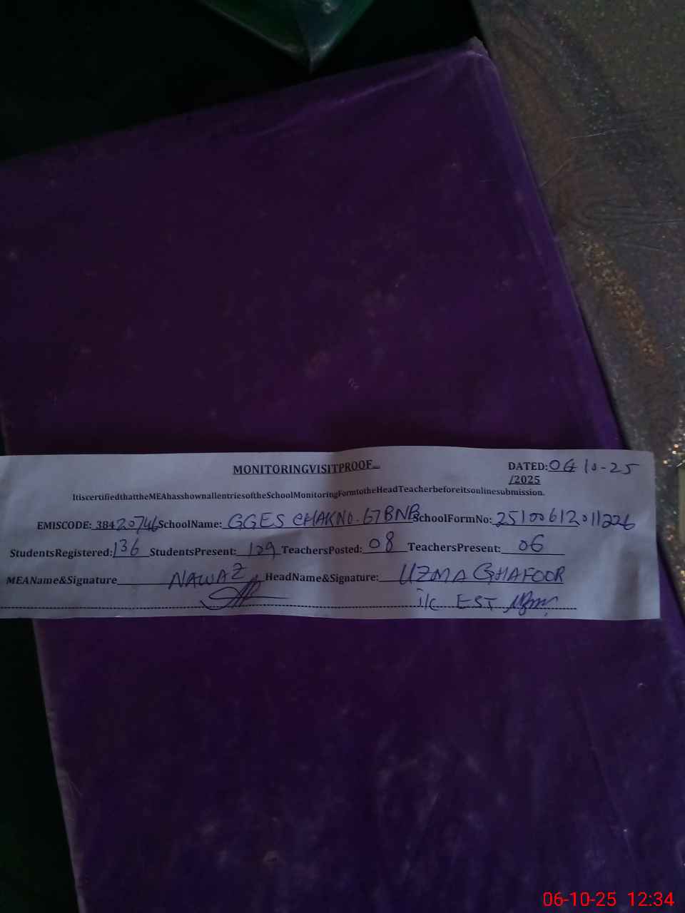 | EMIS Code: 38420746 | Name of School: GGES CHAK NO.67 B-NB | |||