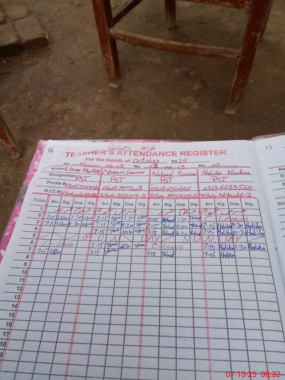 | Name: Uz**** Mu**** Designation: (School Headmaster's/Headmistress's) PST Phone/Cell Number: 03**** |