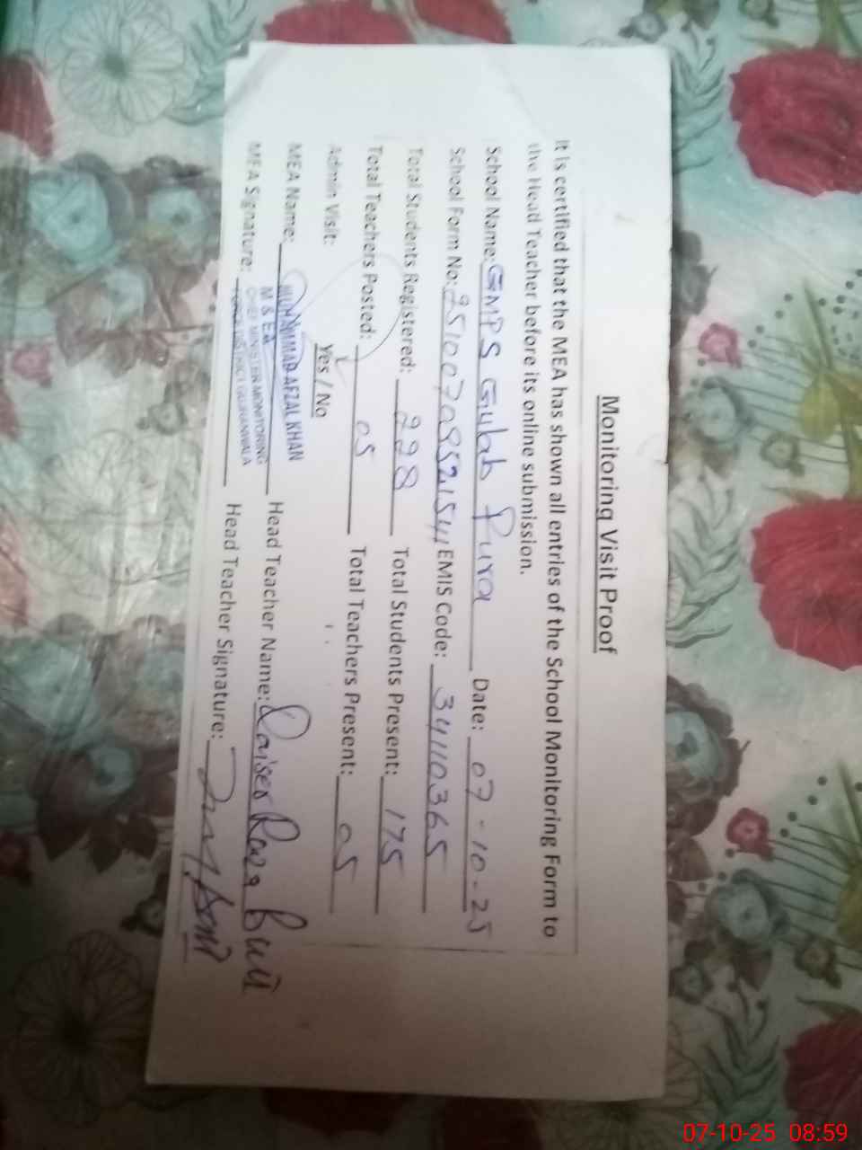 | EMIS Code: 34110365 | Name of School: GMPS GULAB PURA | |||