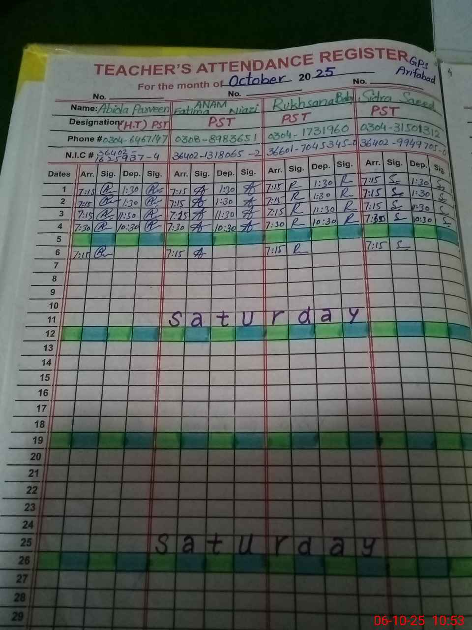 | Name: Ab**** Pa**** Designation: (School Headmaster's/Headmistress's) PST Phone/Cell Number: 03**** |