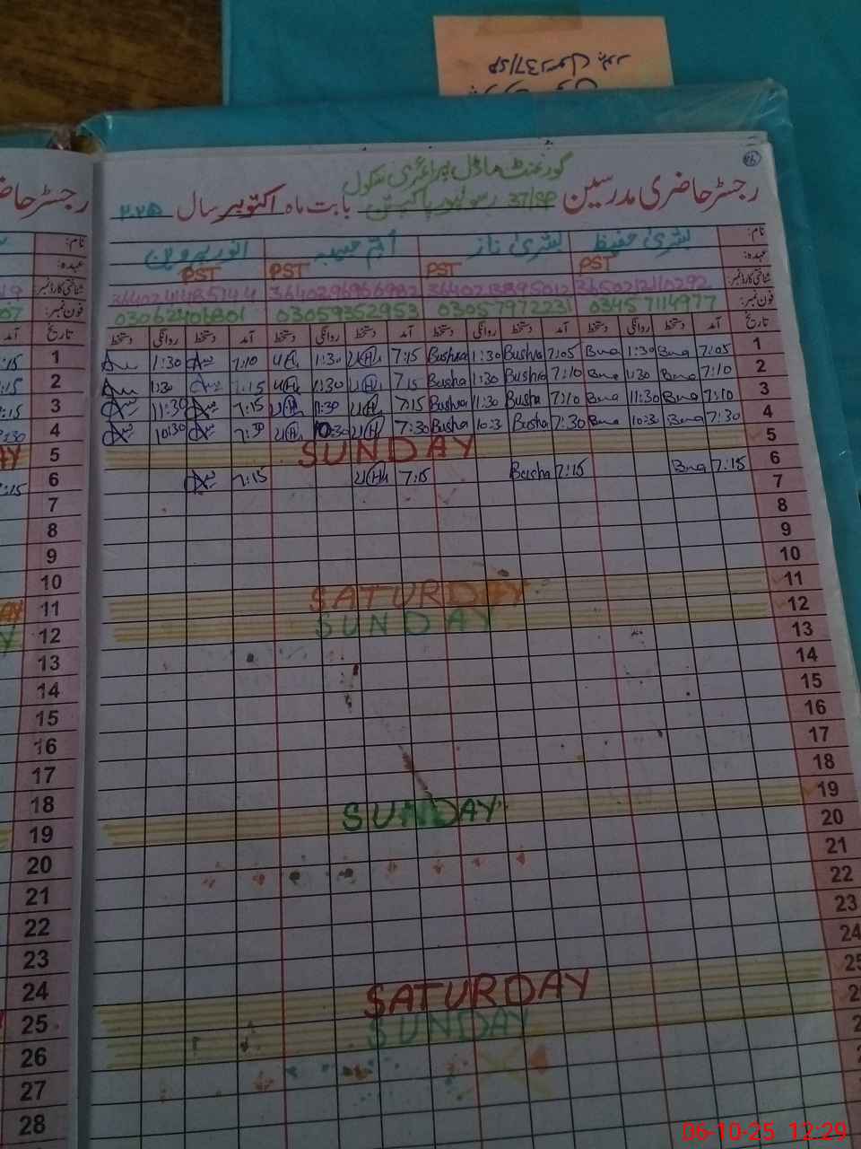| Name: BU**** HA**** Designation: (School Headmaster's/Headmistress's) PST Phone/Cell Number: 03**** |