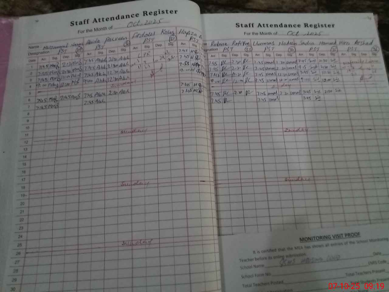| Attendance Register | Head Teacher | MEA with School | Visit Proof |