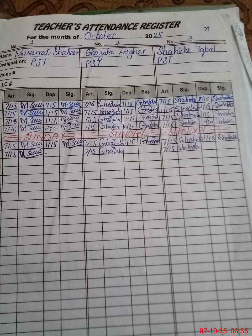 | Name: MU**** SH**** Designation: (School Headmaster's/Headmistress's) PST Phone/Cell Number: 03**** |