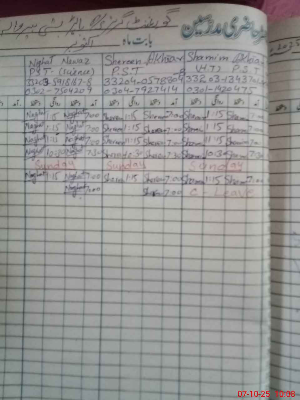 | Name: SH**** AK**** Designation: (School Headmaster's/Headmistress's) PST Phone/Cell Number: 03**** |
