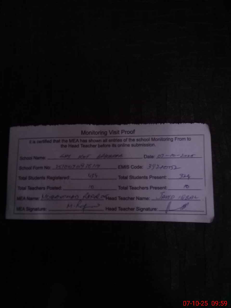 | EMIS Code: 39210152 | Name of School: GHS KOT BAKHSHA | |||