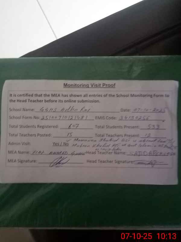 | EMIS Code: 34130256 | Name of School: GGHS ADHO RAI | |||