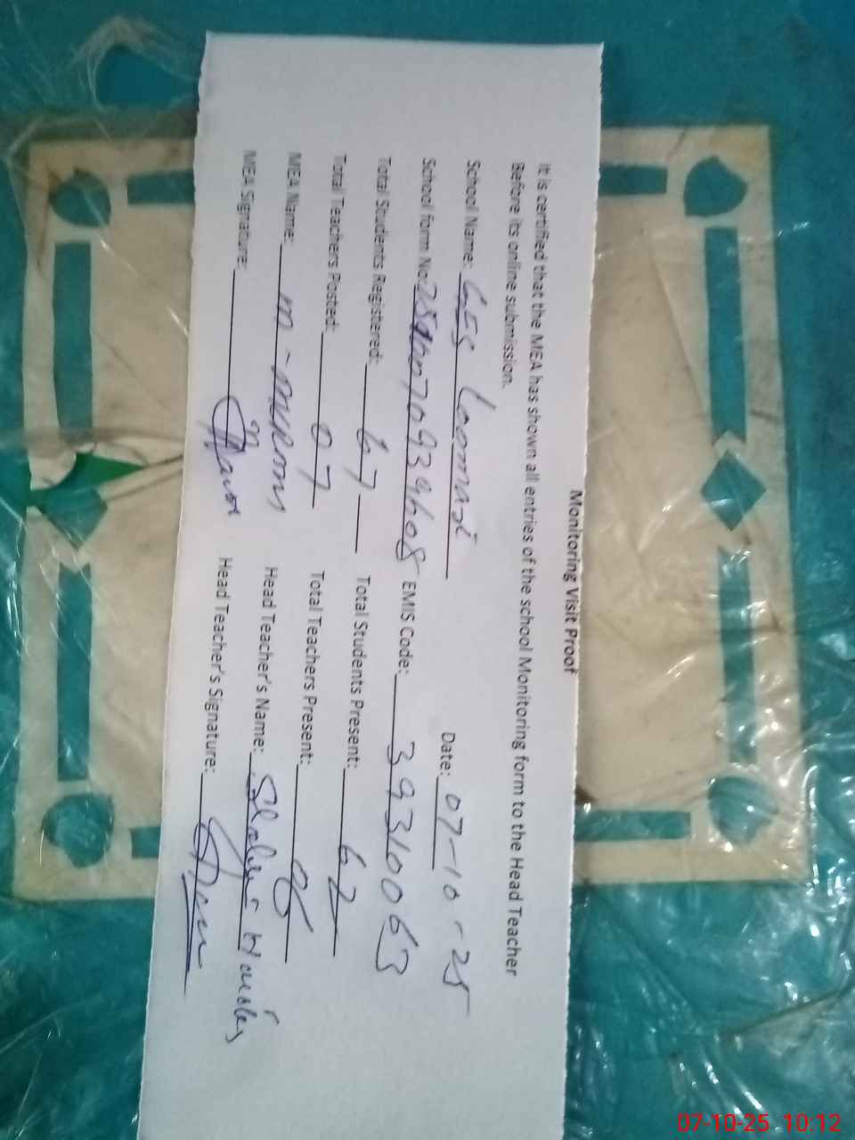 | Certified that this School was Inspected by the Undersigned MEA/DMO Today and the Information Stated Above is as Per Record. | |||||