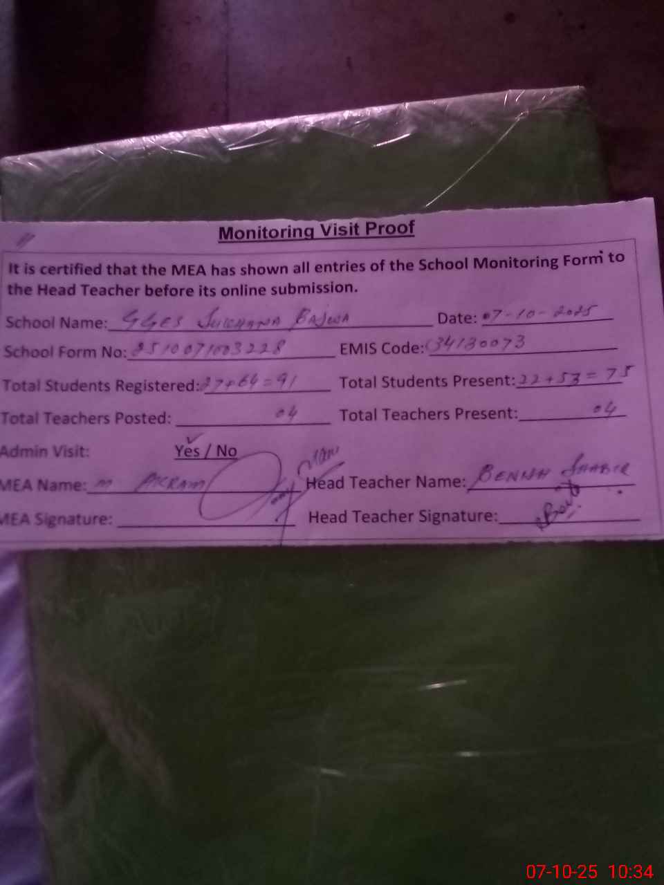 | EMIS Code: 34130073 | Name of School: GGES SUKHANA BAJWA | |||