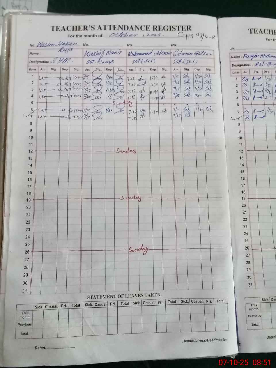 | Name: Wa**** Ha**** Ra**** Designation: (School Headmaster's/Headmistress's) SHM Phone/Cell Number: 03**** |