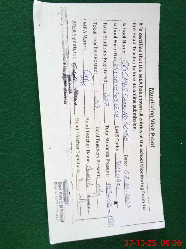 | EMIS Code: 38110473 | Name of School: GGCMS CHAK NO.46 TDA BHAKKAR | |||