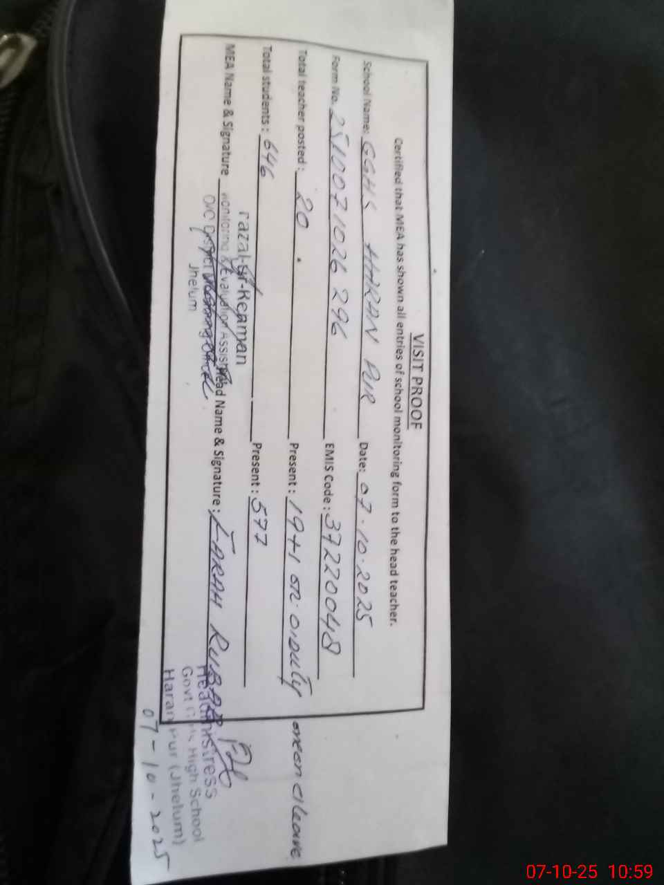 | EMIS Code: 37220048 | Name of School: GGHS HARAN PUR | |||