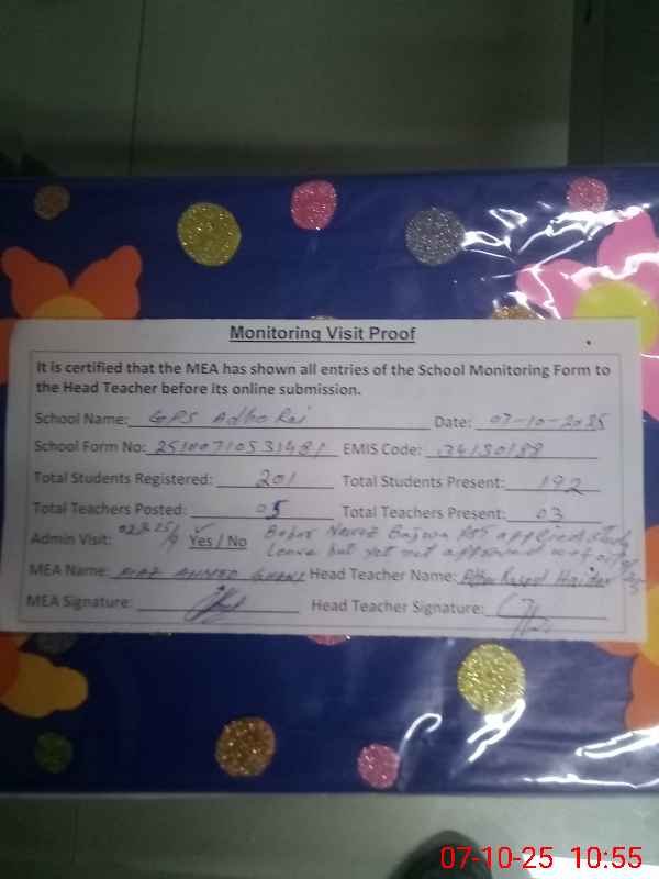 | EMIS Code: 34130188 | Name of School: GPS ADHO RAI | |||