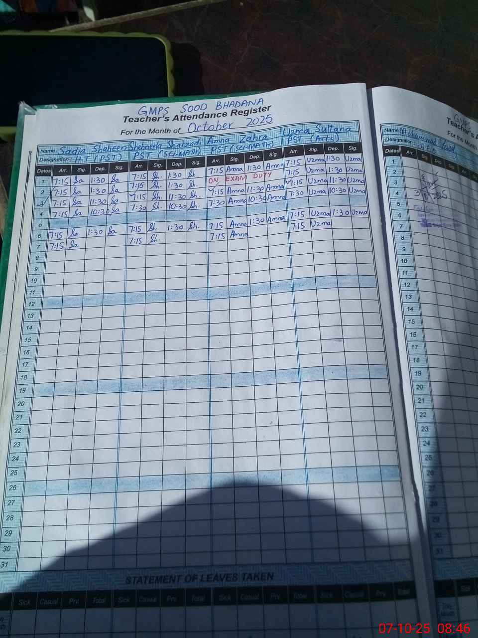 | Leave | Duty | Absent | Maternity | Medical | Ex- Pak |