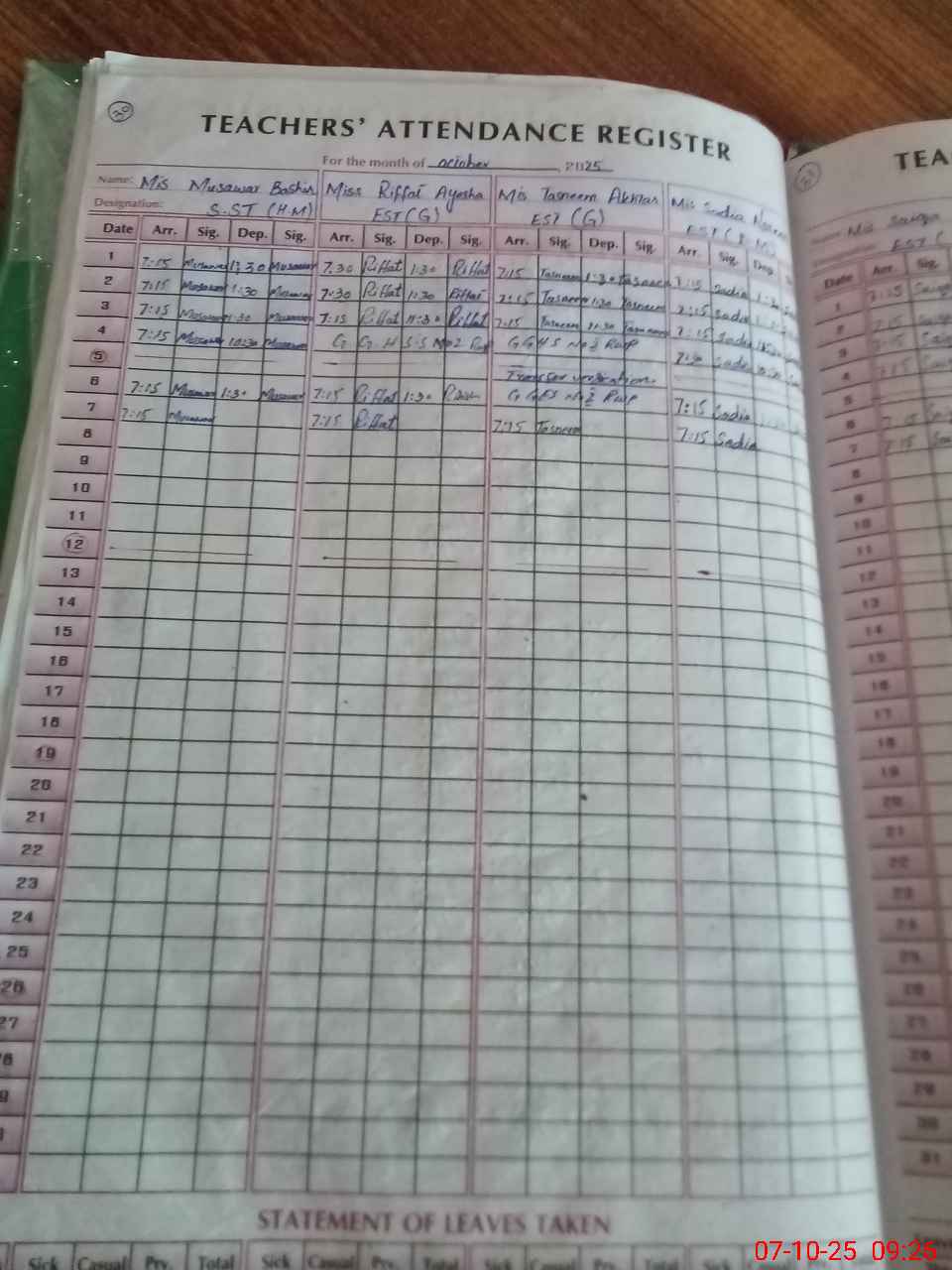 | Monitoring Date: 07-10-2025 | Start Time: 07-10-2025 08:57 AM | End Time: 07-10-2025 09:59 AM | Name of MEA: Kh**** Ri**** | |