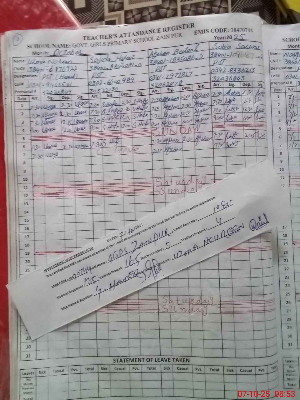 | EMIS Code: 38470744 | Name of School: GGPS ZAIN PUR | |||