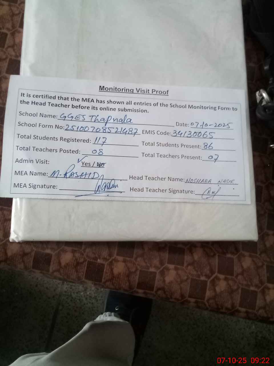 | EMIS Code: 34130065 | Name of School: GGES THAPNALA | |||