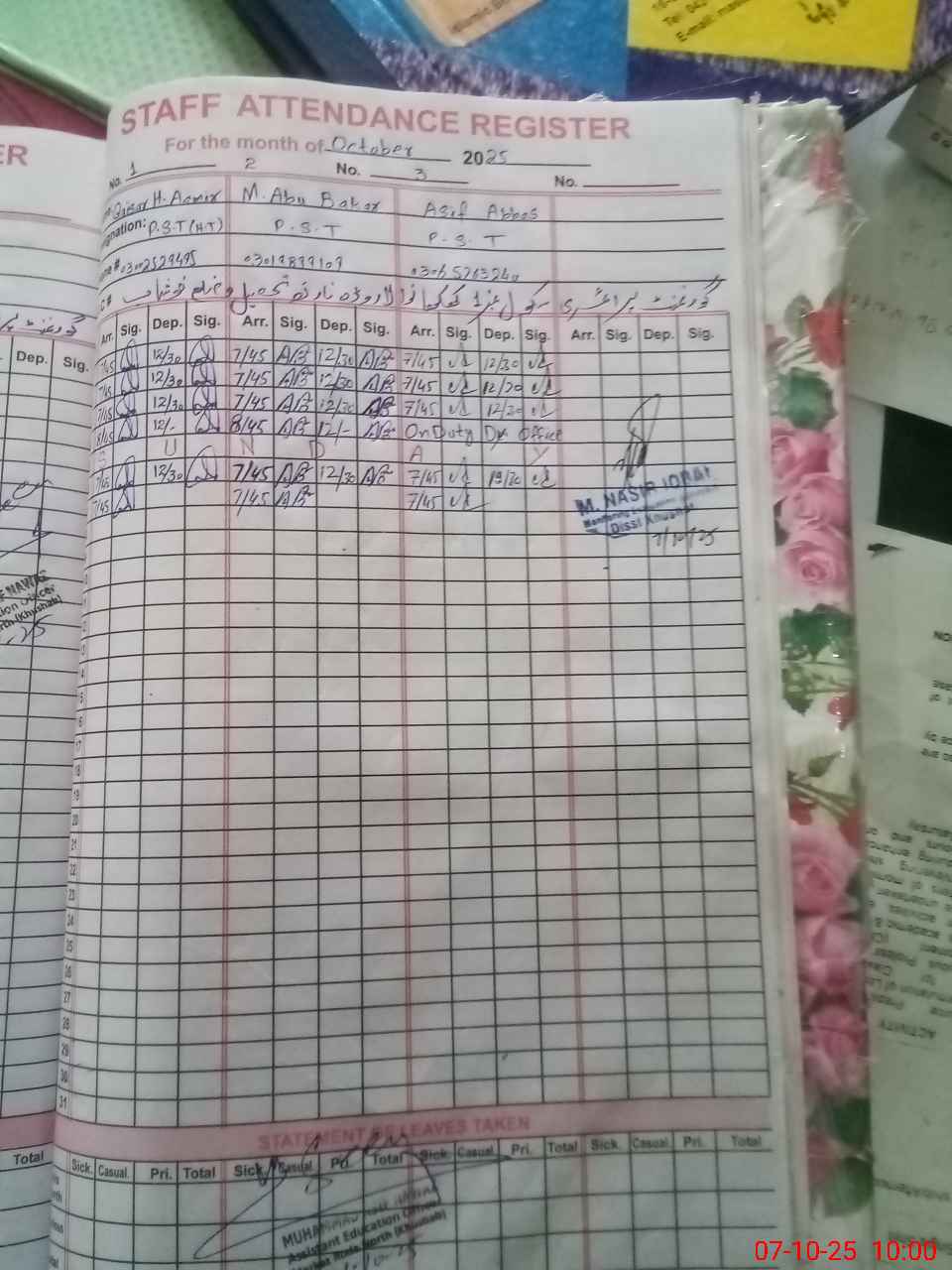 | Name: Qa**** Hu**** Aa**** Designation: (School Headmaster's/Headmistress's) PST Phone/Cell Number: 03**** |