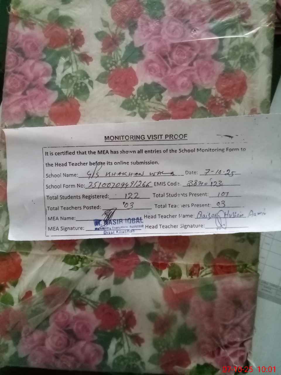 | EMIS Code: 38210123 | Name of School: GPS KHAKHAN WALA | |||