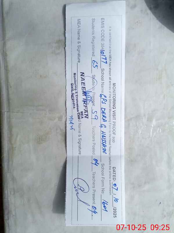 | EMIS Code: 38410177 | Name of School: GPS DERA GHULAM HUSSAIN | |||