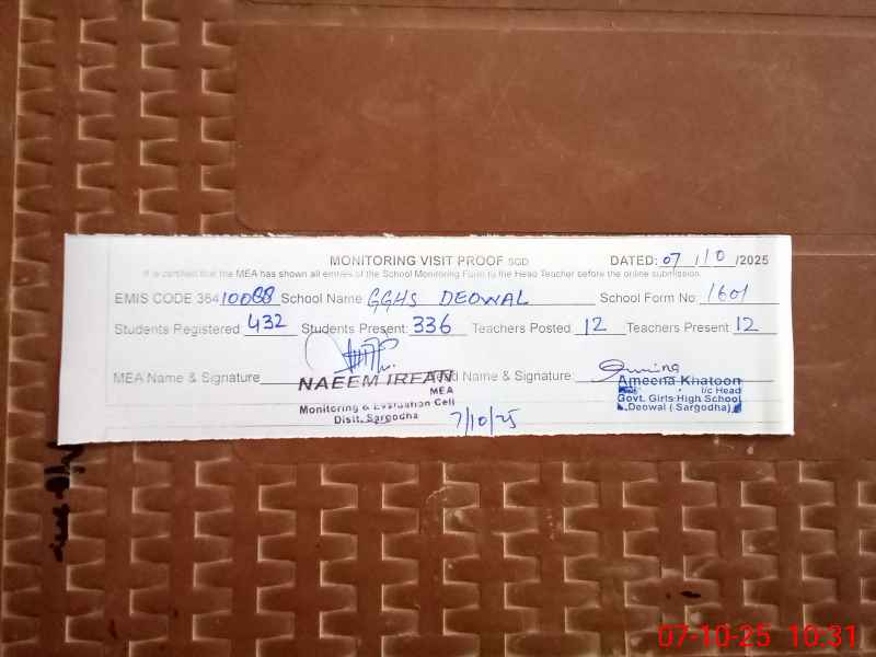 | EMIS Code: 38410088 | Name of School: GGHS DEOWAL | |||