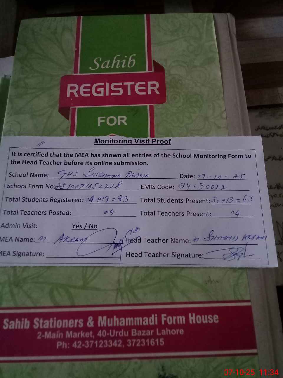 | EMIS Code: 34130022 | Name of School: GHS SUKHANA BAJWA | |||
