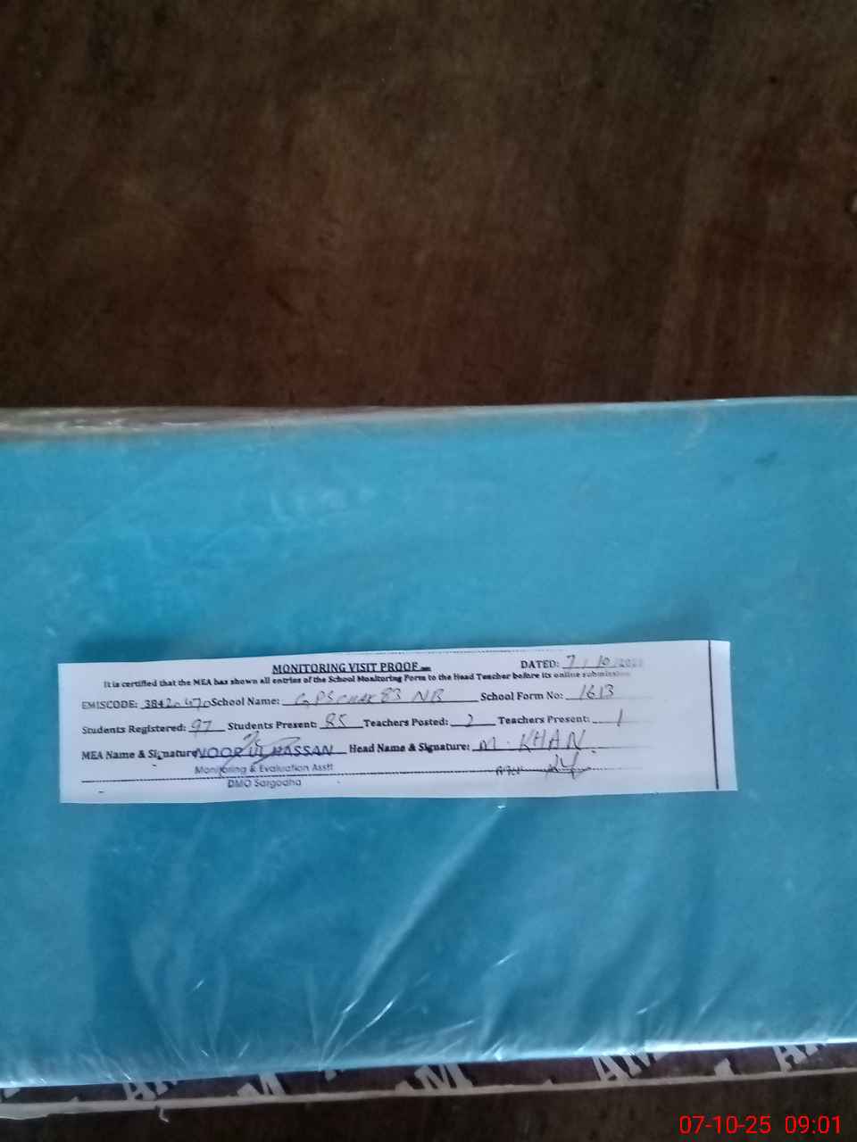 | Certified that this School was Inspected by the Undersigned MEA/DMO Today and the Information Stated Above is as Per Record. | |||||