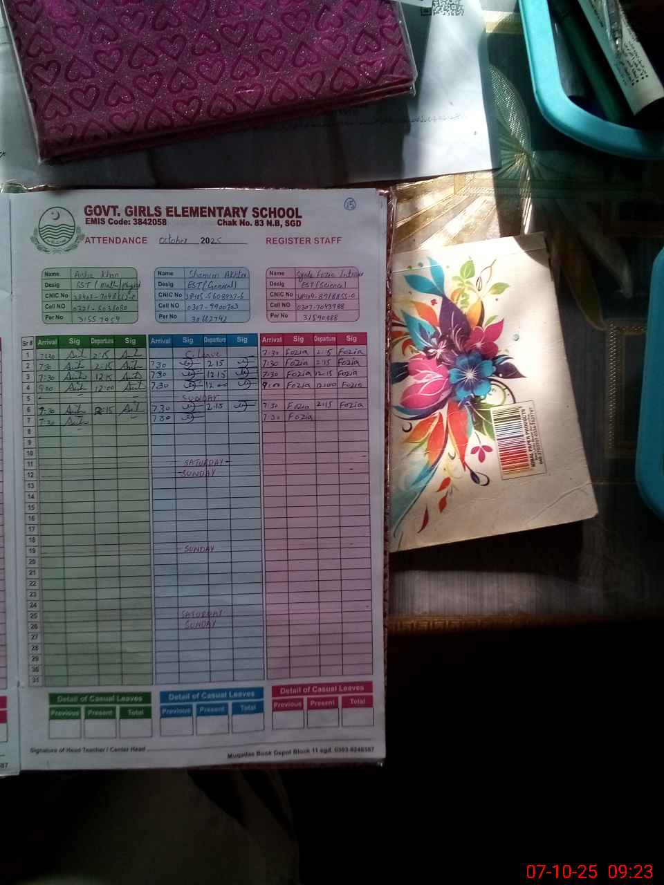 | Name: AI**** KH**** Designation: (School Headmaster's/Headmistress's) SST (PHY-MATH) Phone/Cell Number: 03**** |
