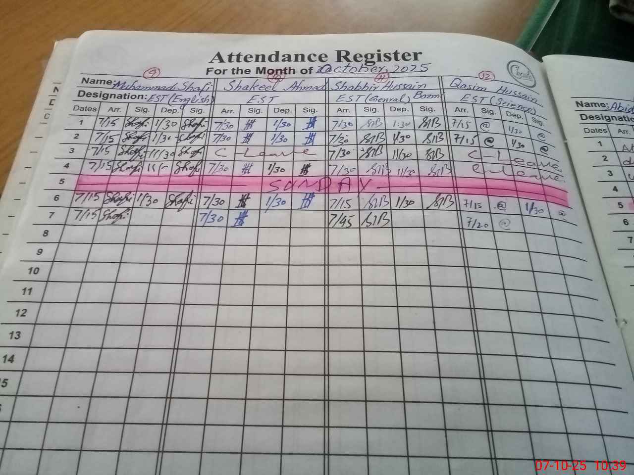 | CNIC | Full Name | Designation | R/C | Absence During Last Calender Month |