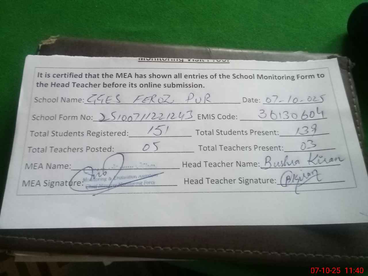| Certified that this School was Inspected by the Undersigned MEA/DMO Today and the Information Stated Above is as Per Record. | |||||