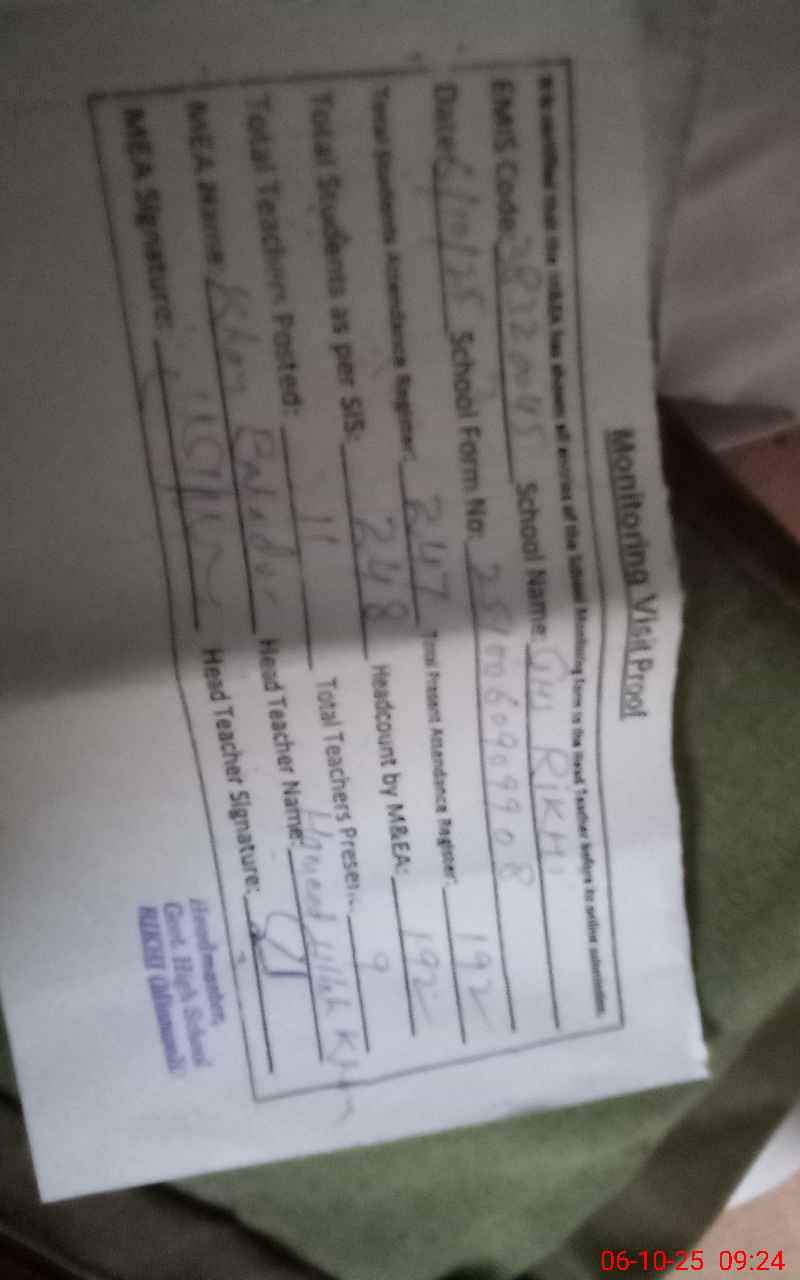 | Attendance Register | Head Teacher | MEA with School | Visit Proof |