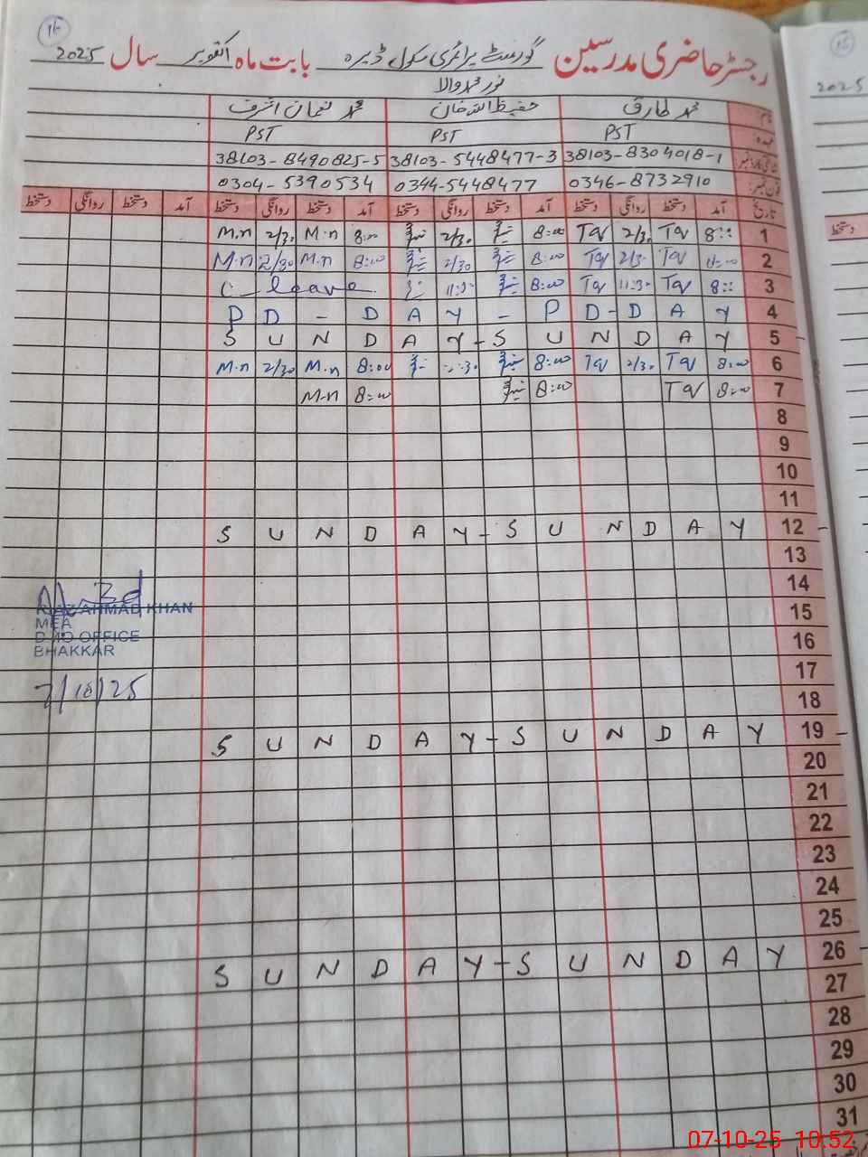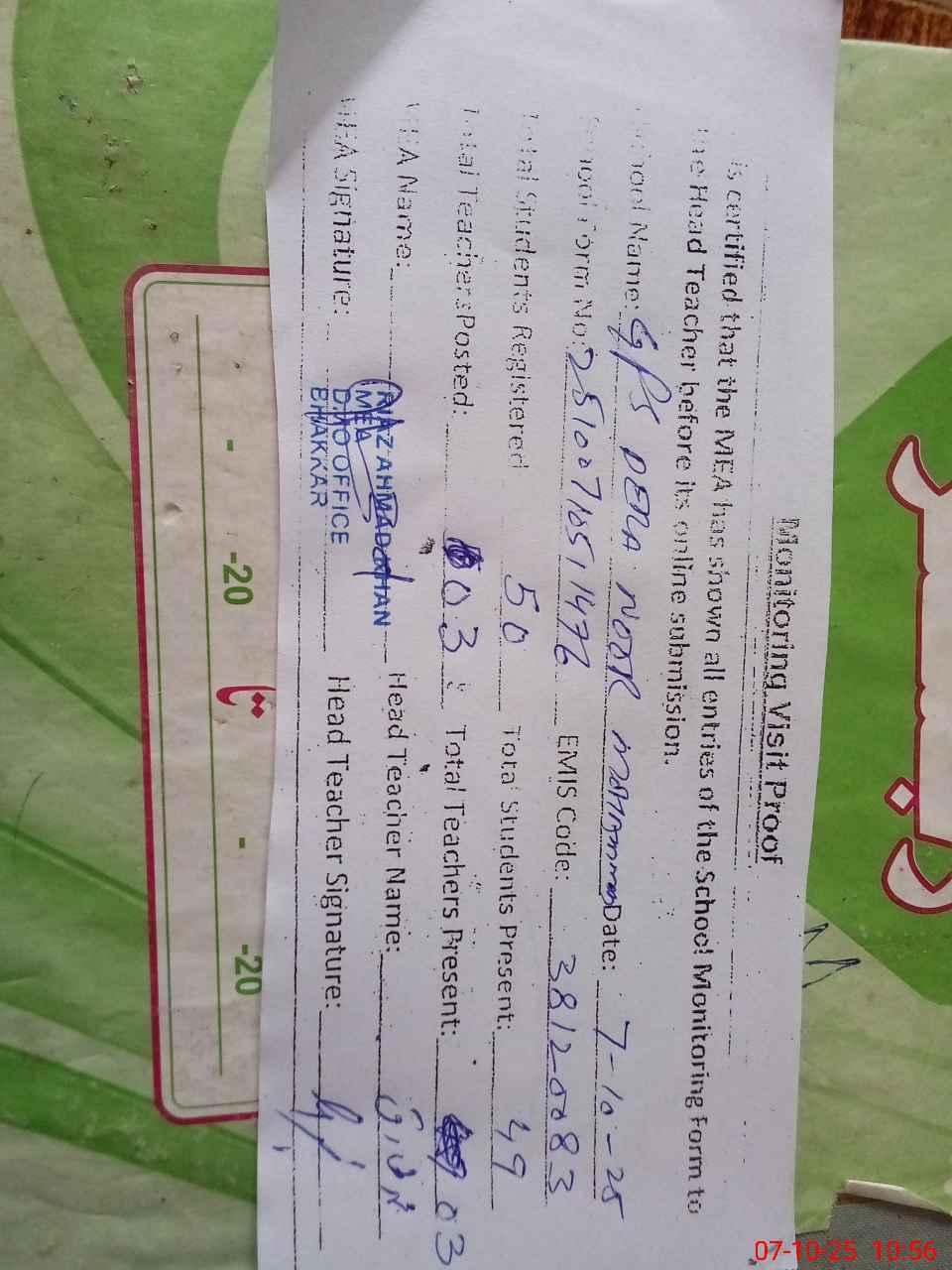 | EMIS Code: 38120083 | Name of School: GPS DERA NOOR MOHAMMAD WALA | |||