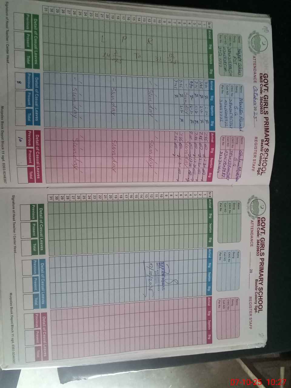 | Name: BU**** QA**** Designation: (School Headmaster's/Headmistress's) PST Phone/Cell Number: 03**** |